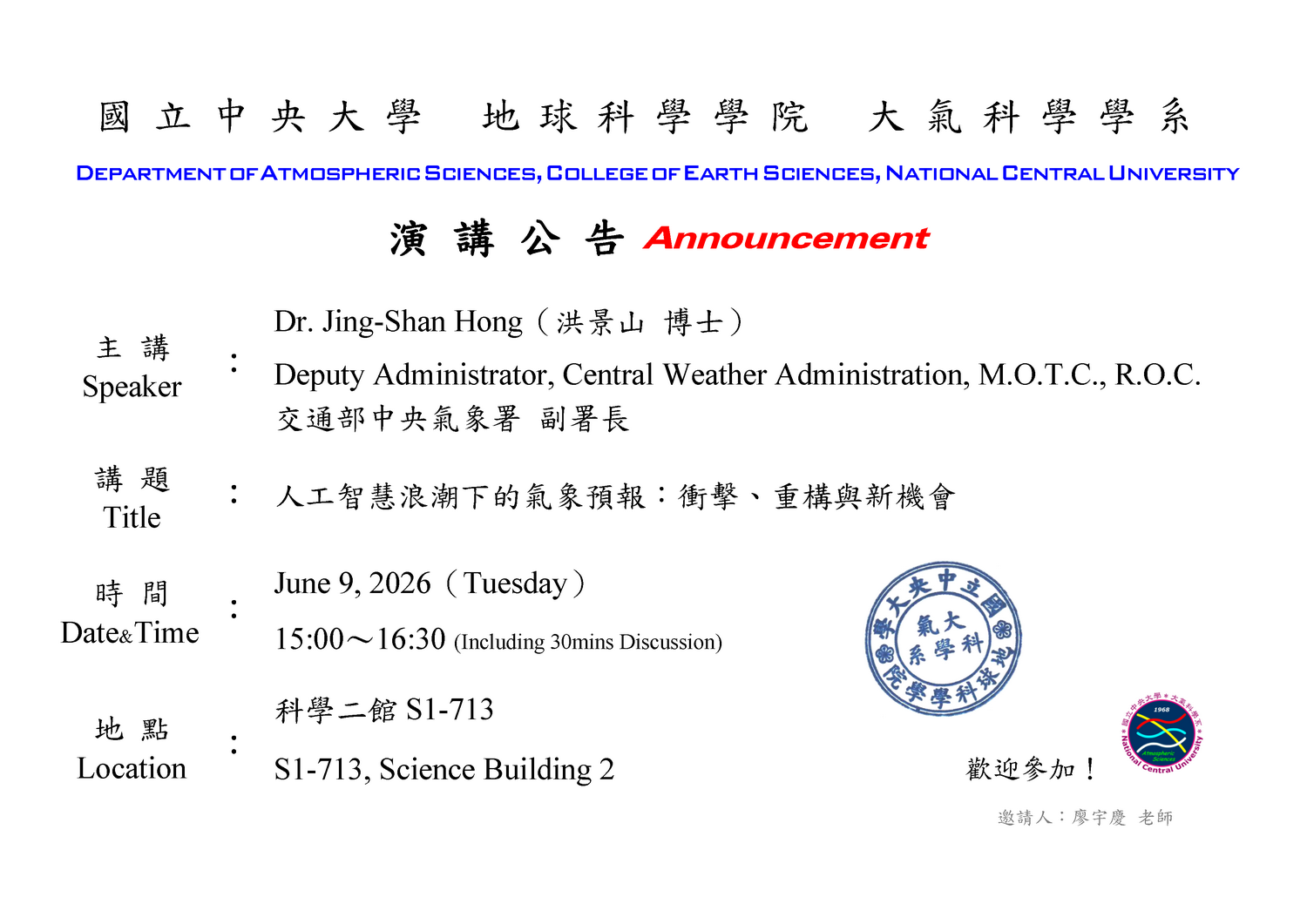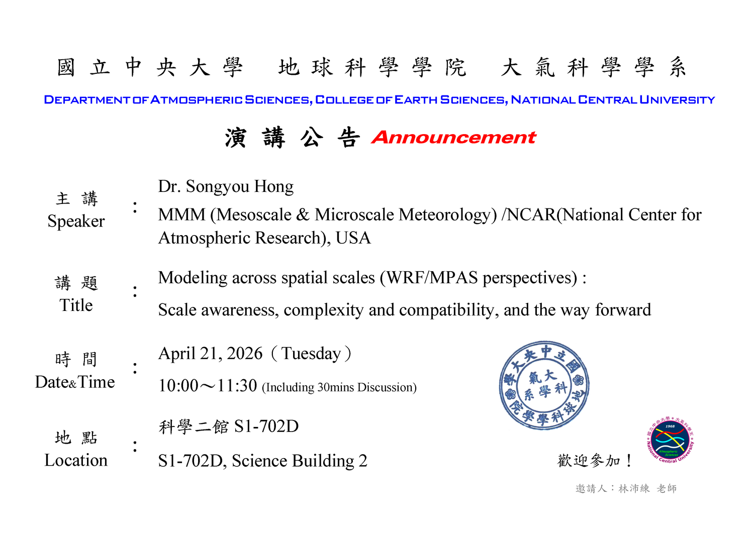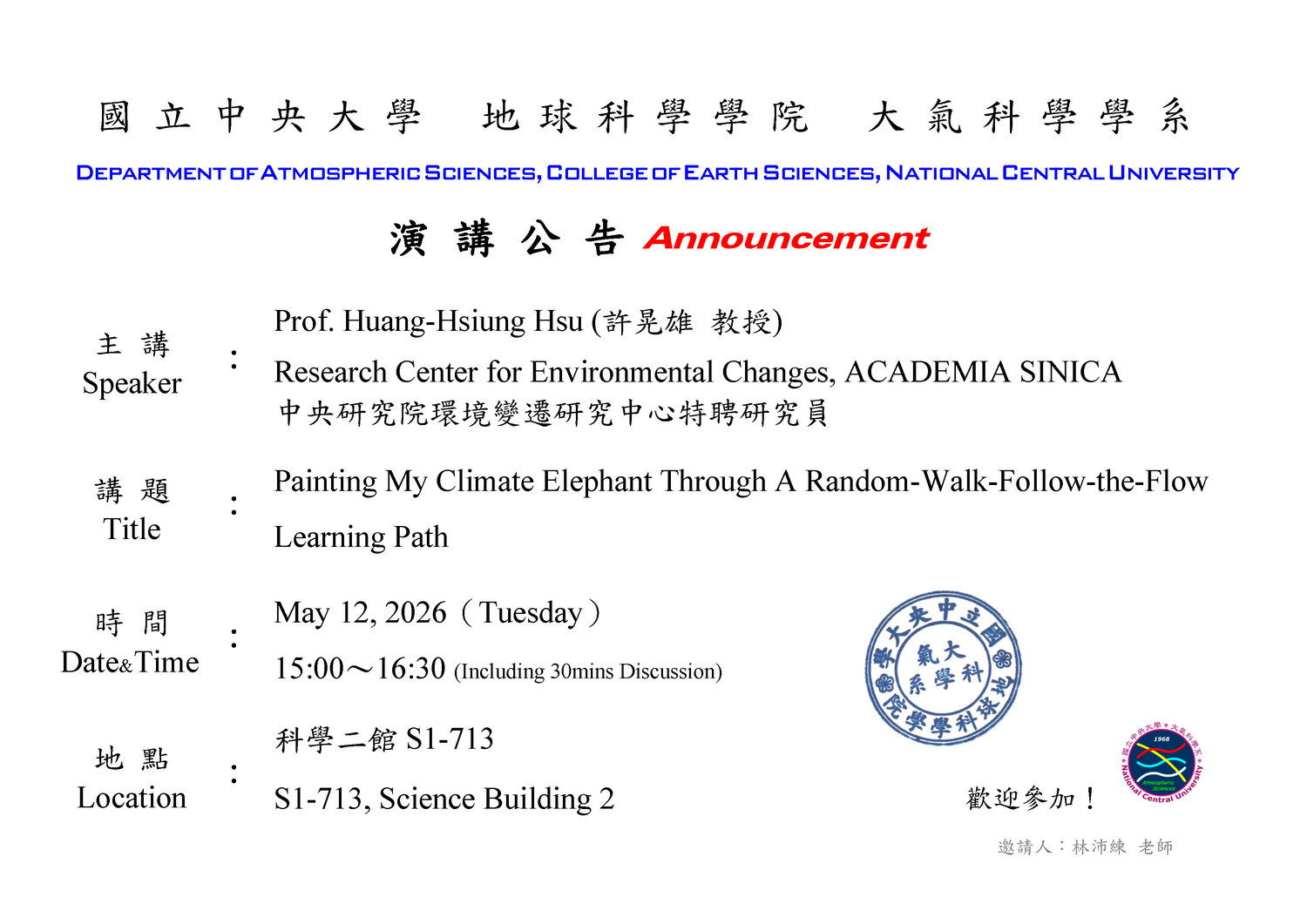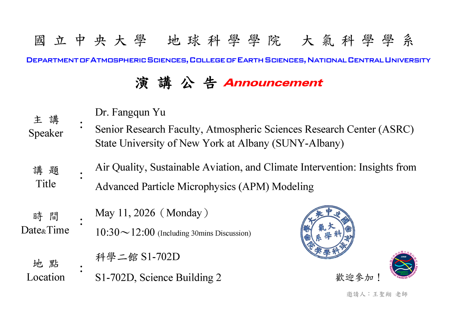 本研究為雲與氣膠實驗室王聖翔教授研究團隊(王聖翔教授、林能暉教授、Otto Klemm教授、研究助理林伯勲)研究成果,於2026年2月10日刊載於Atmospheric Chemistry and Physics期刊。